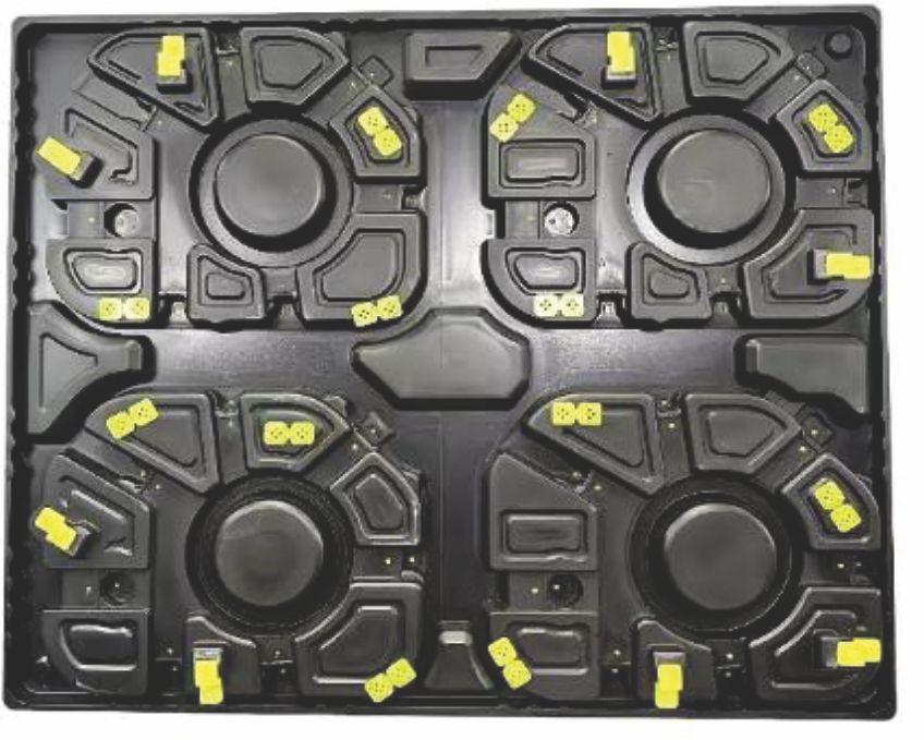 Customised nestable and stackable packaging for small parts /sub parts/ assemblies for protecting them against impact, abrasion, dust, etc and also to facilitate location accuracy where parts are picked and placed by robotic arms,for every type of industry.
